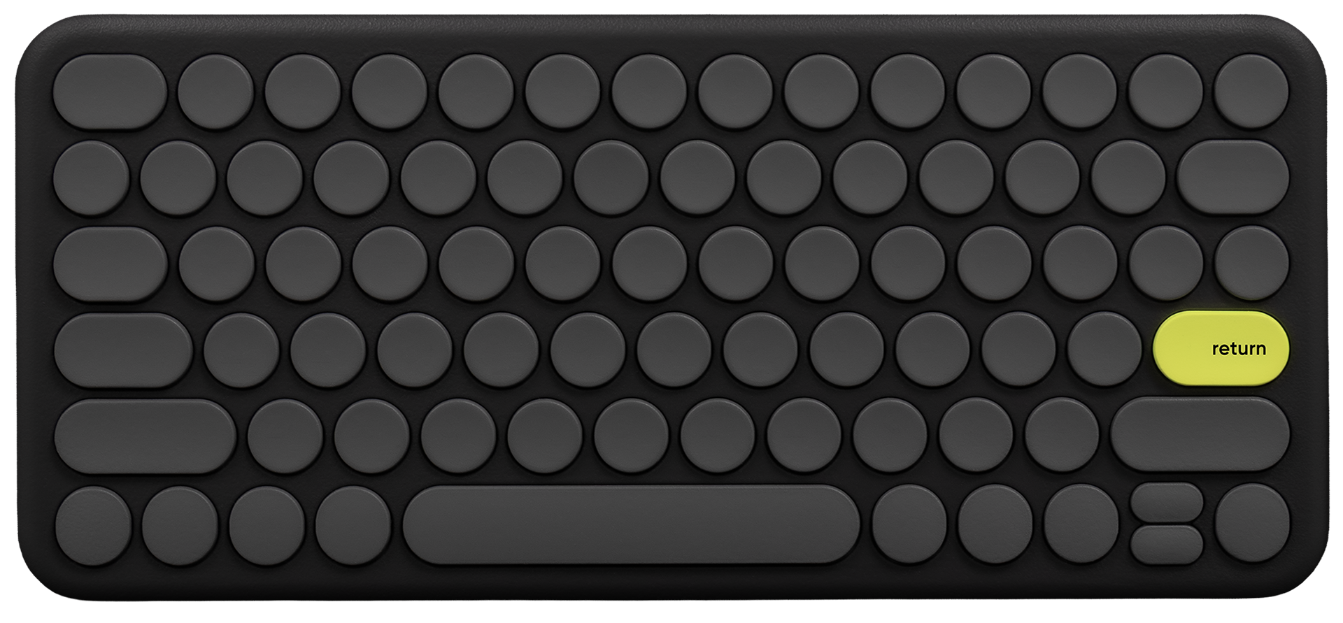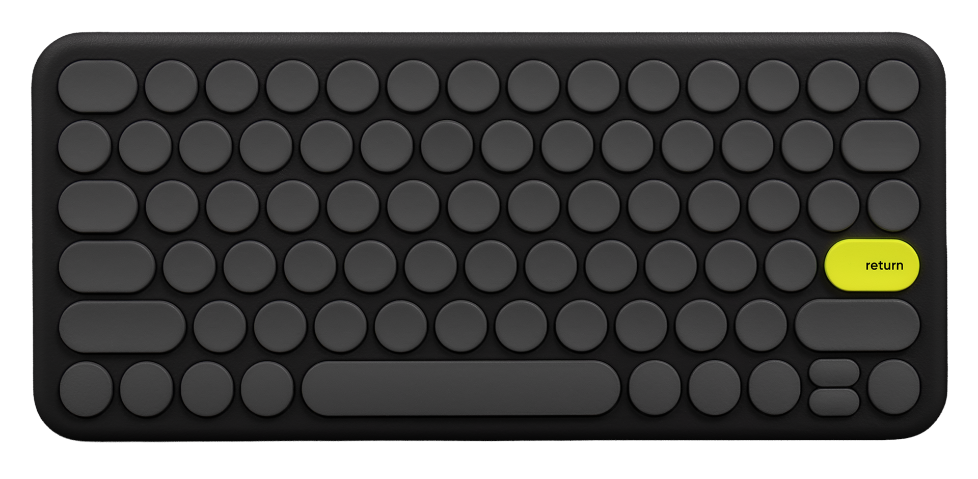 A bright yellow return key stands among muted gray,