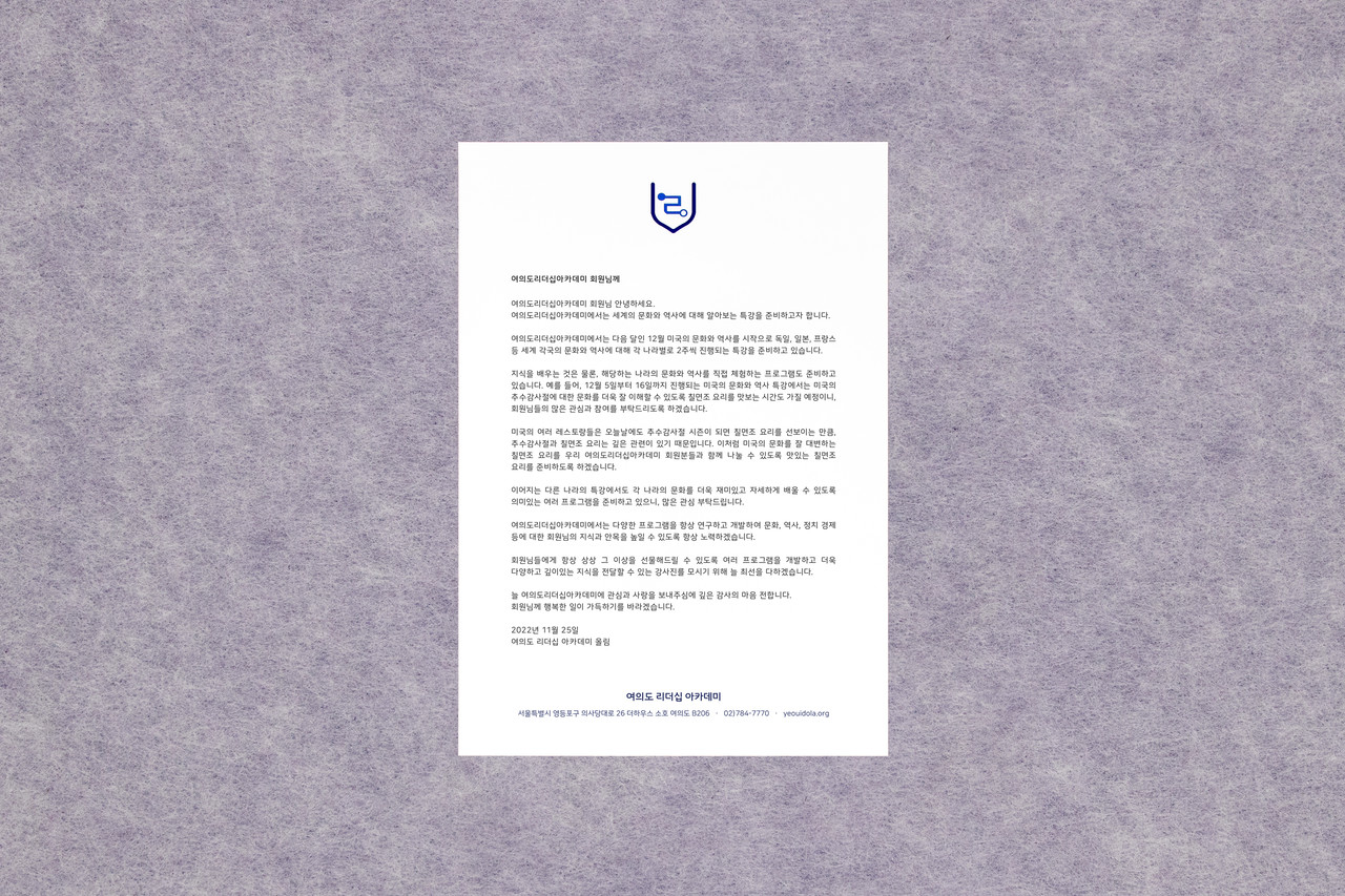 BRAND IDENTITY DESIGN FOR YEOUIDO LEADERSHIP ACADEMY
